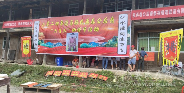 2024年7月11日(农历六月六),暑风送爽的天柱县白市镇岩坳村,杨家宗亲循着古俗齐聚,一场温情满溢的 “晒谱节” 拉开帷幕,以泛黄谱卷为媒,赴一场跨越岁月的寻根之约。