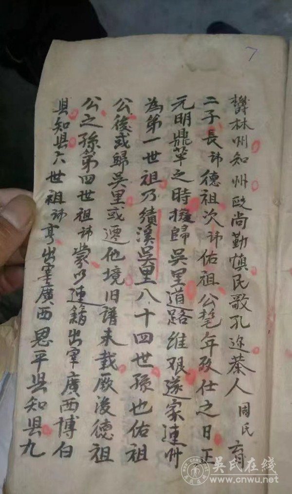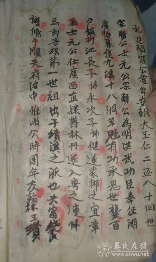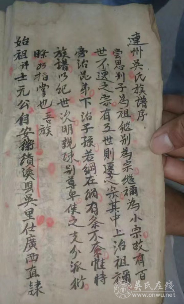 连州吴氏族谱手抄本。尝思别子为祖,继别为宗,继弥为小宗,故有百世不迁之宗。有万世则迁之宗,其中上治祖弥,旁治昆弟,下治子孙。若網在網,有条不紊,维时族谱。