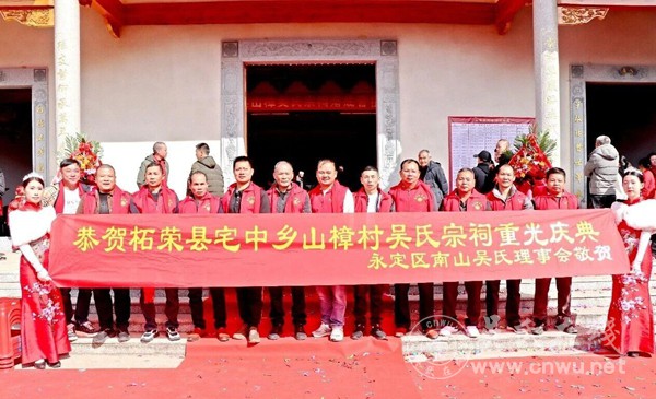 山樟村吴氏宗亲代表吴明春做了充满激情的欢迎词,他告诉宗亲:山樟吴氏,源溯福建龙岩永定南山,在大清顺治年间,由吾祖配卿端卿两君同胞兄弟创居福宁霞浦百里有余之地名曰杨家坪,后在康熙年间,在山浆村徐氏先祖的邀请下,由添祐公迁居至山浆村(后改名山樟村),并与山樟徐姓家族联姻,迁居后在徐氏先祖的大力帮扶下,吴氏在山樟涿渐形成聚居,历经三百余年沧桑岁月,繁衍子孙300余人,在柘荣这片沃土上生生不息、薪火相传,枝繁叶茂,人丁兴旺。