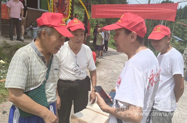 宗亲们小心翼翼取出珍藏的族谱,在场坝中整齐铺展。阳光洒在斑驳的字迹上,迁徙脉络、先辈名讳、处世箴言清晰可辨。族长手持族谱领衔诵读祖训,“存忠信、务勤俭、和乡里” 的训语朗朗上口,老少宗亲齐声跟读,字字饱含对先辈的敬仰。