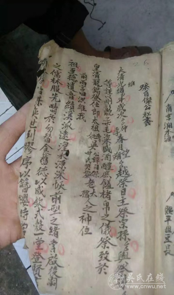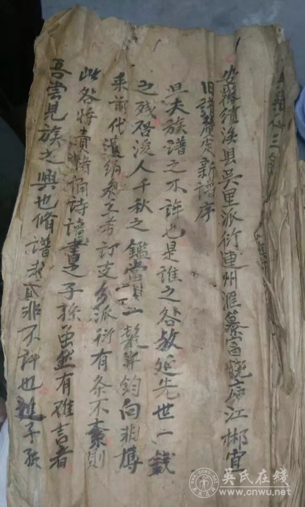 连州吴氏族谱手抄本。尝思别子为祖,继别为宗,继弥为小宗,故有百世不迁之宗。有万世则迁之宗,其中上治祖弥,旁治昆弟,下治子孙。若網在網,有条不紊,维时族谱。