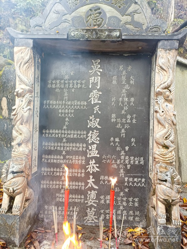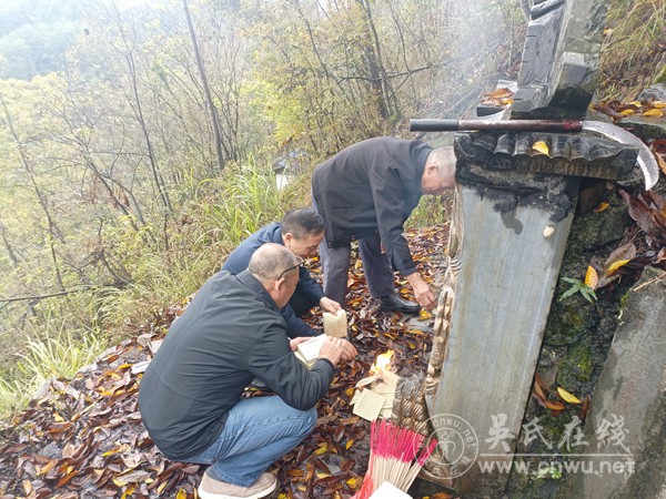 11月10日上午,吴世平会长,吴展和顾问陪同几位宗亲到夭柱县白市镇雷公踏车霍氏太婆坟上香祭祖,霍氏太婆是开基祖吴盛公的儿子八郎公的夫人。