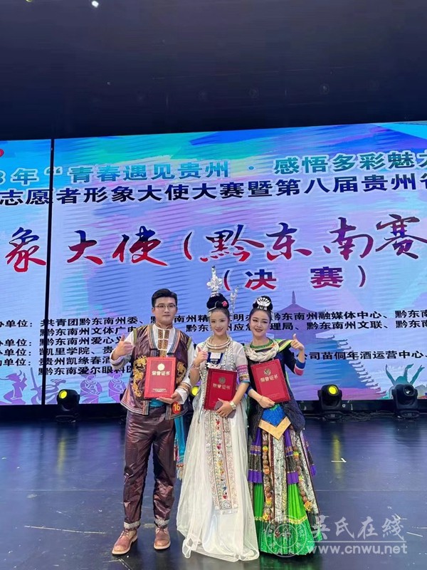 2023年12月10日,祝贺吴家佳参加贵州省第八届“贵州文明旅游志愿者形象大使”黔东南赛区荣获第一名 。